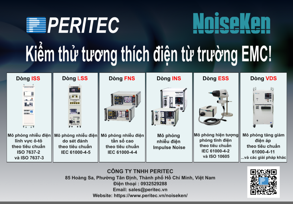 3. Thiết bị kiểm thử tương thích điện từ trường Noiseken Được thành lập vào năm 1975 tại Nhật Bản, NoiseKen tập trung vào thiết bị kiểm tra khả năng miễn nhiễm điện từ và các giải pháp liên quan. Các dòng sản phẩm bao gồm các loại thiết bị kiểm tra khả năng miễn nhiễm khác nhau, từ các thiết bị tuân thủ các tiêu chuẩn dòng IEC 61000-4, các tiêu chuẩn miễn nhiễm quốc tế khác (như ISO 10605, các tiêu chuẩn dòng ISO 7637) hoặc các tiêu chuẩn miễn nhiễm cấp quốc gia và thậm chí đến các tiêu chuẩn kiểm tra nội bộ của khách hàng.